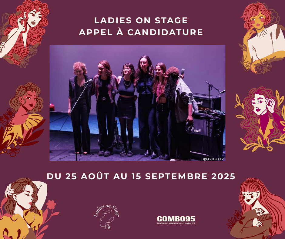 Dans le cadre de la quatrième édition de Ladies On Stage, le Combo95 lance son appel à candidature du 25 août 2025 au 15 septembre 2025 pour la saison 2025-2026 !